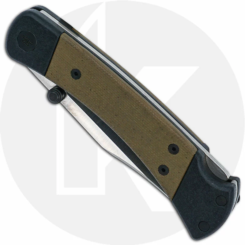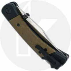 The 0110GRS5 Buck 110 Hunter Sport is a sleek variant of the Classic Buck 110 Folding Hunter that features a 3 3/4 inch clip point blade made of premium S30V stainless steel, .120 inch thick, with a Rockwell hardness of 59-61, and dual thumb studs for ambidextrous one hand opening. The black anodized aluminum handle, 5 inches closed, has green canvas micarta inlays, sturdy lockback and a deep carry Cerakote® Armor Black coated stainless steel pocket clip mounted at the butt end. The Buck 110 Hunter Sport has an overall open length of 8 3/4 inches, and it weighs 4.6 ounces. Proudly made in the USA.