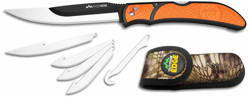Outdoor Edge Knives: Outdoor Edge RazorBone, Orange Handle with Camo Sheath, OE-RBB20