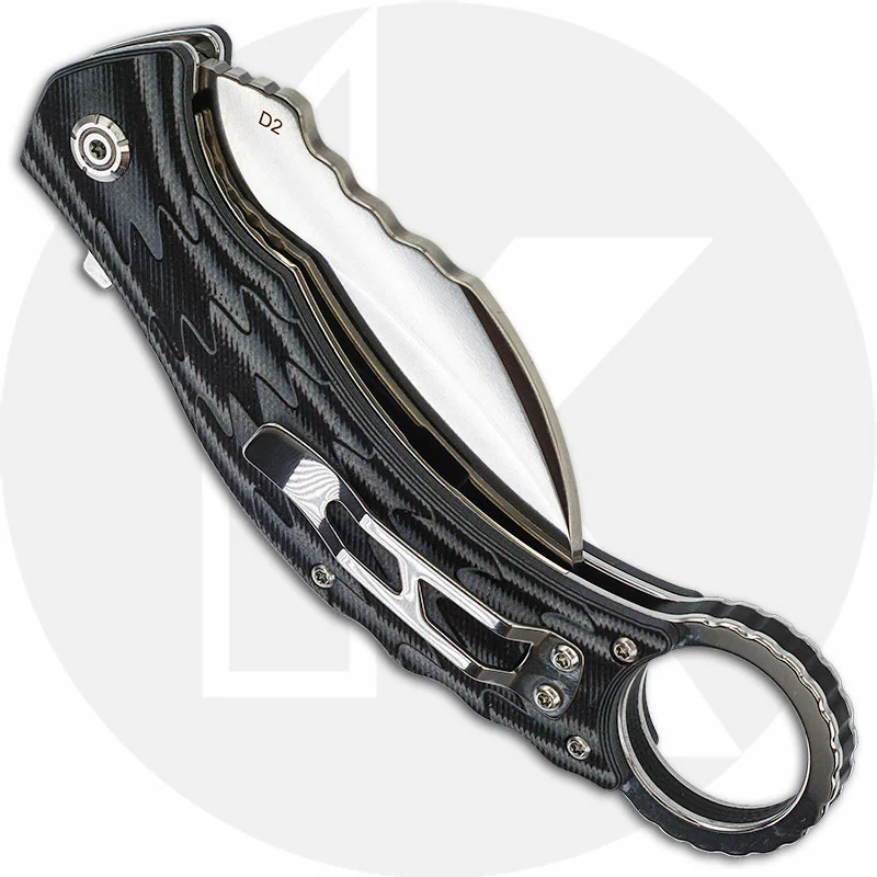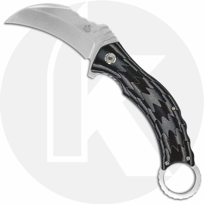 QSP Knives: QSP Eagle Karambit, Satin Blade, Black and Gray G10 Handle, QSP-120E