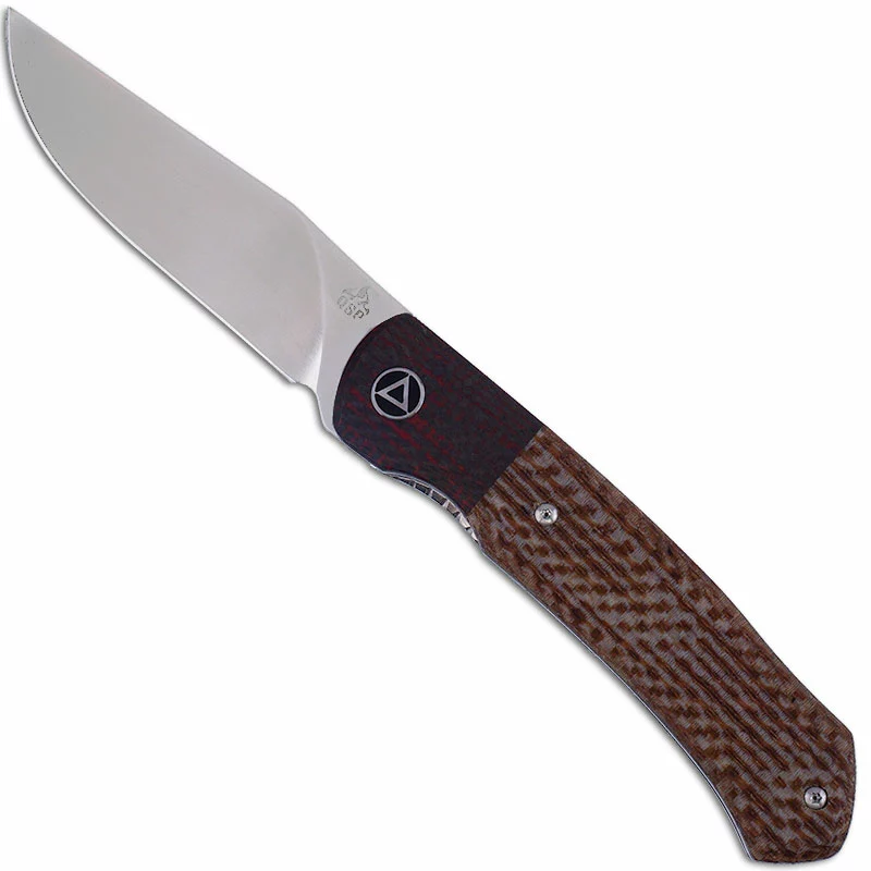 QSP Knives: QSP Gannet Knife, Satin 154CM Blade, Brown Micarta with Red Carbon Fiber Bolster, QSP-137B