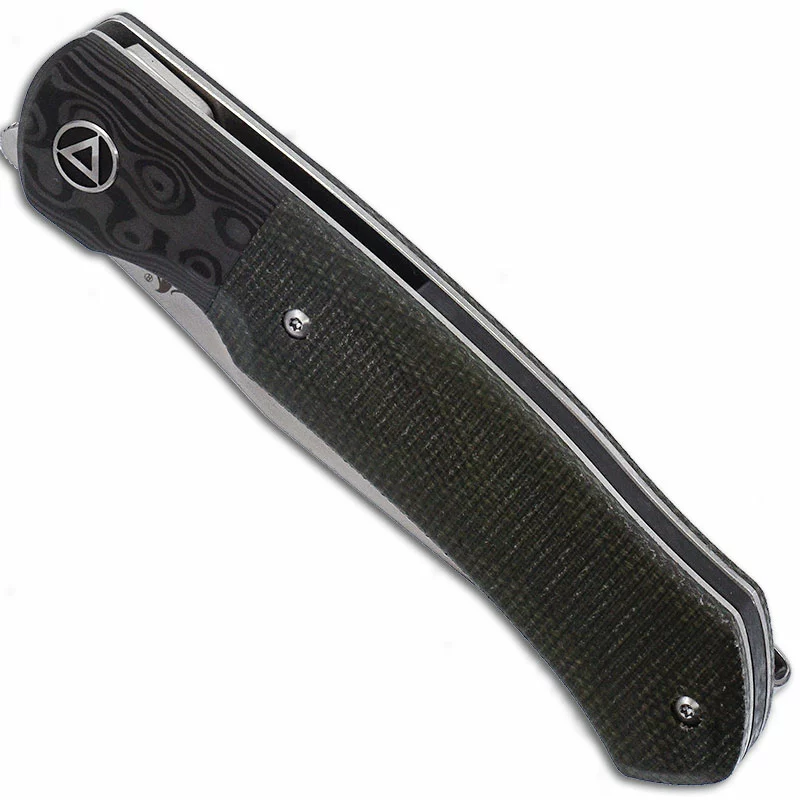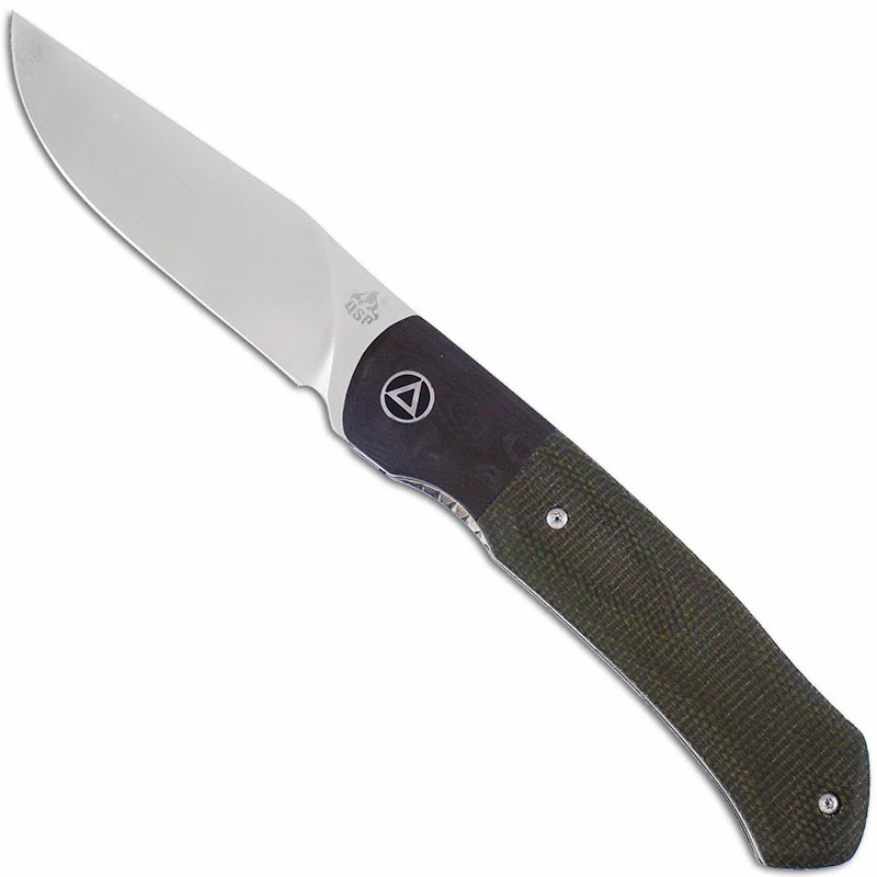 QSP Knives: QSP Gannet Knife, Satin 154CM Blade, Green Micarta with Black Carbon Fiber Bolster, QSP-137C