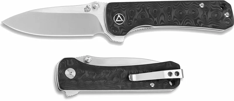 QSP Knives: QSP Hawk Knife, Satin S35VN Blade, Black Carbon Fiber Handle, QSP-131C