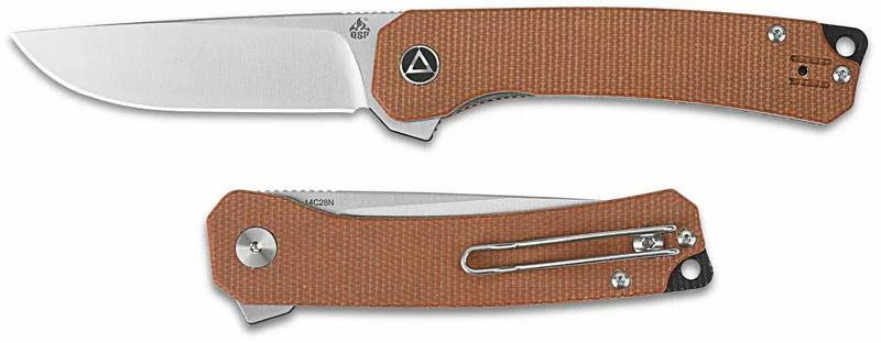 The QS139-A QSP Osprey is a sleek value price EDC that features a 3.25 inch classic drop point blade made of 14C28N stainless steel, 3mm thick, with a Rockwell hardness of 59-61, satin finish, notched thumb rest for secure grip, and a flipper for ambidextrous one hand opening. The ergonomic brown micarta handle, 4.25 inches closed, has a pivot with ceramic ball bearing support for smooth opening, sturdy liner lock, stainless steel liners and back spacer (with integral lanyard hole) for strength, and a side to side reversible wire clip mounted at the butt end. This QSP Osprey Knife has an overall open length of 7.5 inches, and it weighs 3.25 ounces. Made in China.