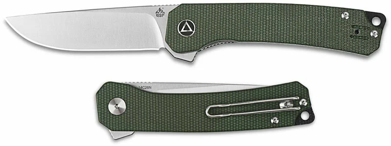 The QS139-C QSP Osprey is a sleek value price EDC that features a 3.25 inch classic drop point blade made of 14C28N stainless steel, 3mm thick, with a Rockwell hardness of 59-61, satin finish, notched thumb rest for secure grip, and a flipper for ambidextrous one hand opening. The ergonomic green micarta handle, 4.25 inches closed, has a pivot with ceramic ball bearing support for smooth opening, sturdy liner lock, stainless steel liners and back spacer (with integral lanyard hole) for strength, and a side to side reversible wire clip mounted at the butt end. This QSP Osprey Knife has an overall open length of 7.5 inches, and it weighs 3.25 ounces. Made in China.