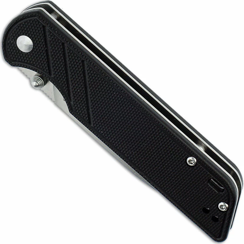 The QS102-A QSP Parrot is a compact value price everyday carry knife that features a 3.25 inch spear point blade made of Chinese D2 steel with a satin finish, a notched thumb rest for secure grip, and dual thumb studs for ambidextrous one hand opening. The black G10 handle, 4.00 inches closed, has stainless steel liners for strength, sturdy liner lock, a lanyard hole and a side to side reversible stainless steel pocket clip mounted at the butt end. The QSP Parrot Knife has an overall open length of 7.25 inches, and it weighs 3.2 ounces. Made in China.