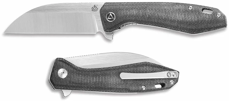 QSP Knives: QSP Pelican, 2 Tone Satin Blade, Black Micarta Handle, QSP-118D2