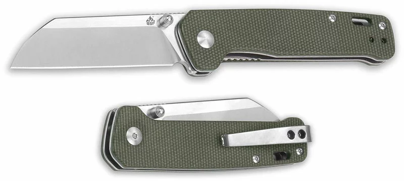 QSP Knives: QSP Penguin, 2 Tone Satin Blade, OD Linen Micarta Handle, QSP-130C