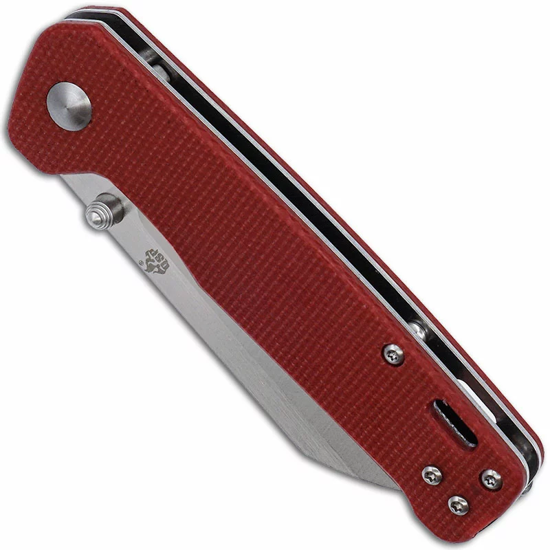 QSP Knives: QSP Penguin, 2 Tone Satin Blade, Red Linen Micarta Handle, QSP-130D