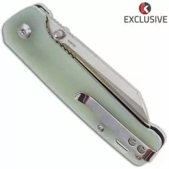 The QS130-KP3 QSP Penguin is a compact EDC Knives Plus Exclusive that features a 3.06 inch sheepfoot blade made of premium S35VN stainless steel with a satin finish, a notched thumb rest for secure grip, and dual thumb studs for ambidextrous one hand opening. The eye catching jade G10 handle, 4.00 inches closed, has stainless steel liners for strength, sturdy liner lock, a lanyard hole and a side to side reversible deep carry stainless steel pocket clip mounted at the butt end. The QSP Penguin Knife has an overall open length of 7.06 inches, and it weighs 3.14 ounces. Made in China.