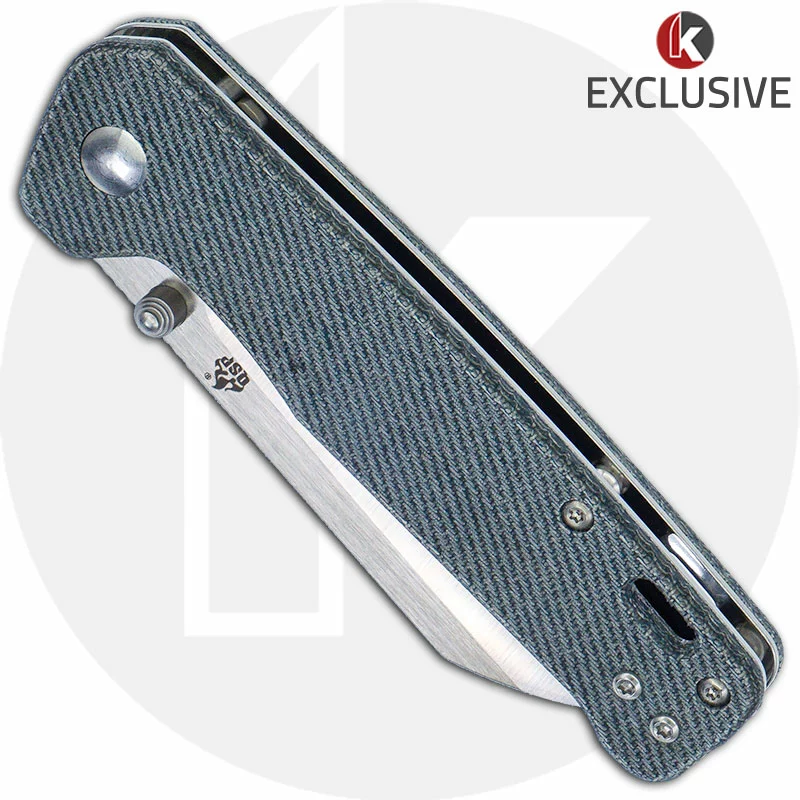 The QS130-KP4 QSP Penguin is a compact EDC Knives Plus Exclusive that features a 3.06 inch sheepfoot blade made of premium M390 stainless steel with a satin finish, a notched thumb rest for secure grip, and dual thumb studs for ambidextrous one hand opening. The eye catching blue denim micarta handle, 4.00 inches closed, has stainless steel liners for strength, sturdy liner lock, a lanyard hole and a side to side reversible deep carry stainless steel pocket clip mounted at the butt end. The QSP Penguin Knife has an overall open length of 7.06 inches, and it weighs 3.14 ounces. Made in China.