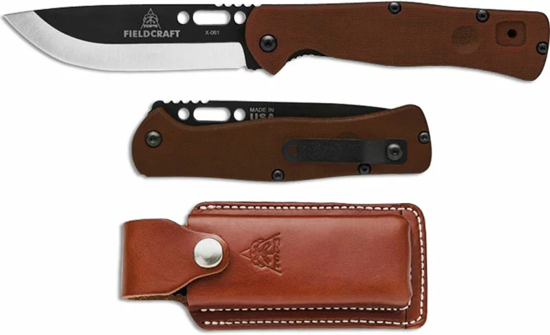 TOPS Knives: TOPS Fieldcraft Folder, Black Cerakote with Tan Micarta, TK-FCF01