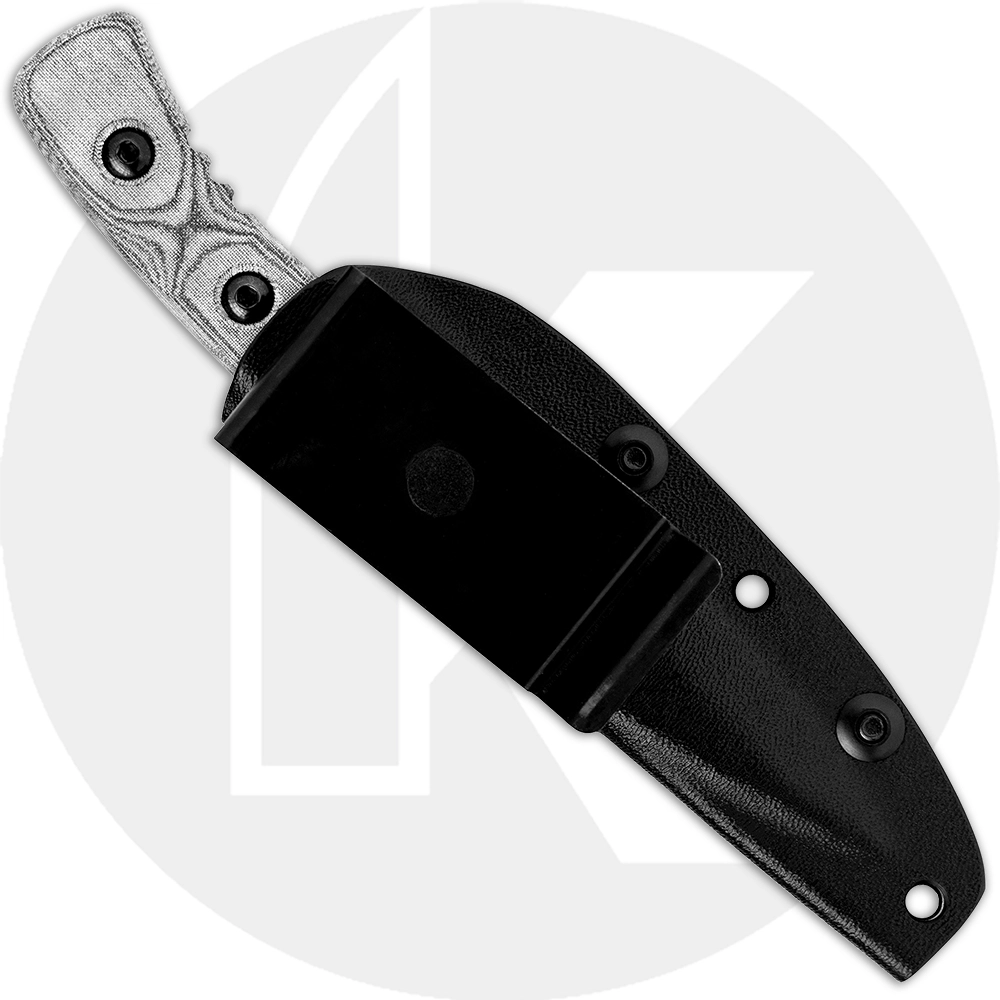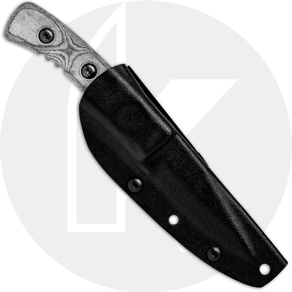 The LBRO-01 TOPS Little Bro Knife is a compact EDC that features a 3 inch drop point fixed blade made of 1095 steel, .190 inch thick, with a Rockwell hardness of 56-58. The blade has a non reflective Black Traction Coated finish, a notched thumb rest for secure purchase, and a long spine swedge to lessen weight. The Little Bro Knife has full tang construction for strength, and ergonomic black linen Micarta scales for comfort. A black Kydex sheath with rotating spring steel clip is included. The TOPS Knives Little Bro Knife has an overall length of 6.88 inches, and it weighs 4.3 ounces; 6.2 ounces with the sheath. Made in the USA.
