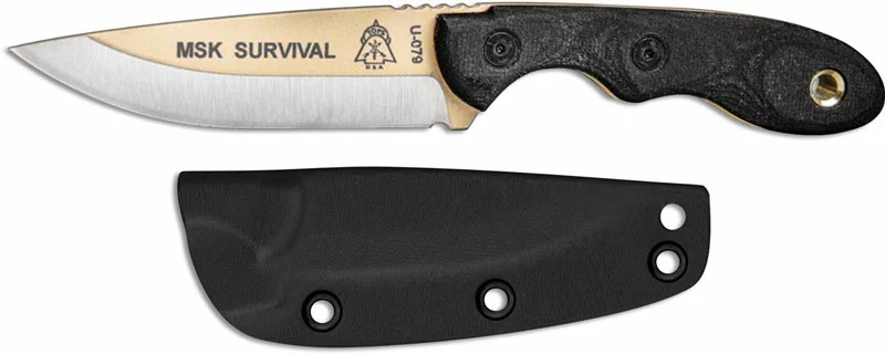 TOPS Knives: TOPS Mini Scandi Survival Knife, Coyote Tan with Black Micarta, TK-MSKSURV