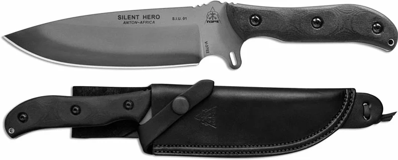 TOPS Knives: TOPS Silent Hero Knife, Black River Wash with Black Micarta, TK-HERO02