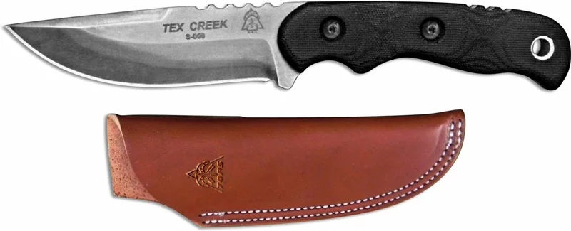 TOPS Knives: TOPS Tex Creek Knife, Black River Wash with Black Micarta, TK-TEX4